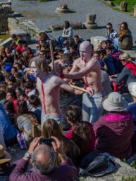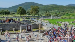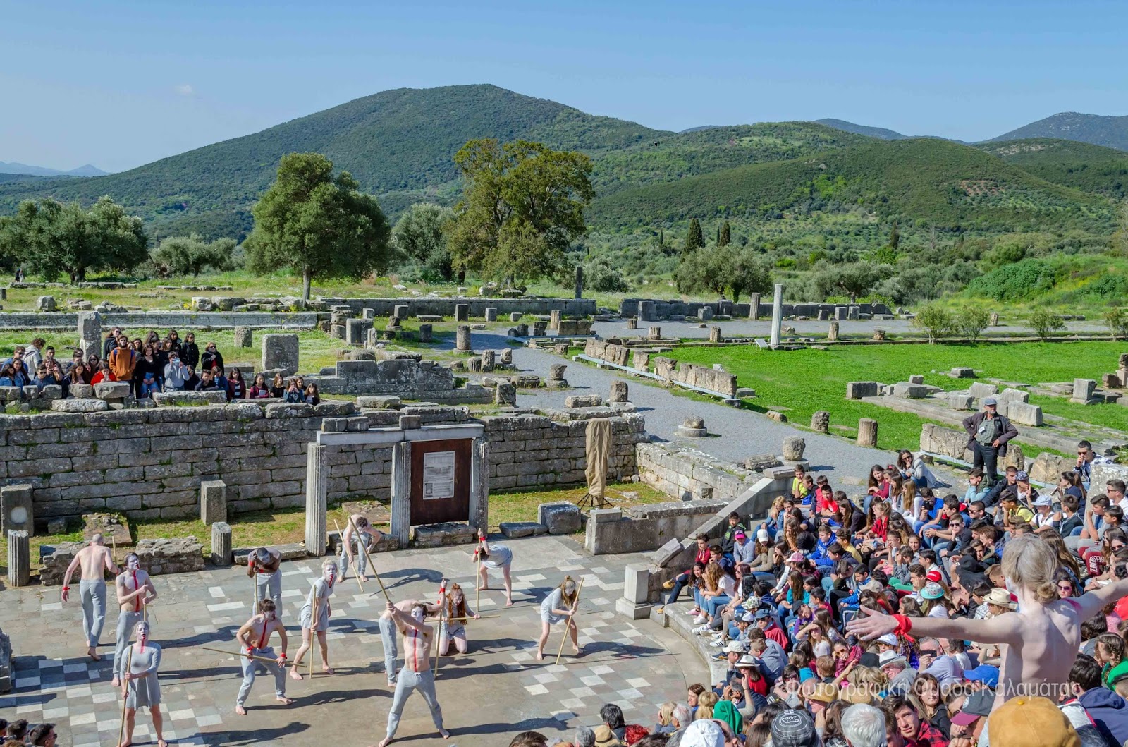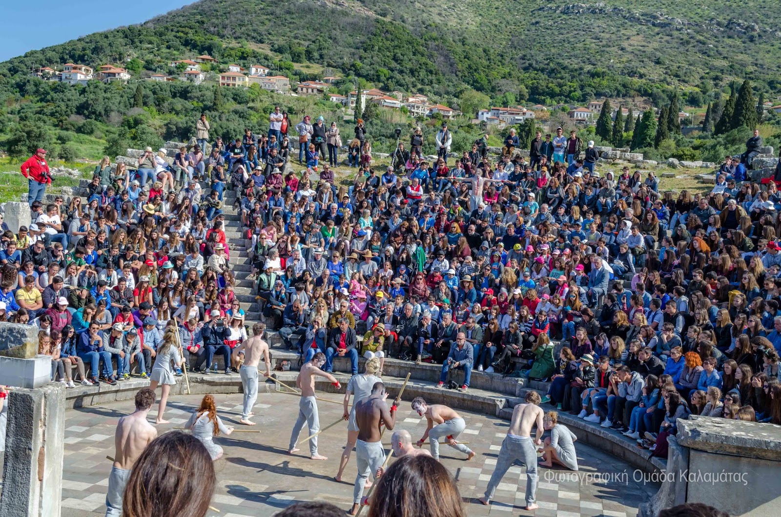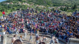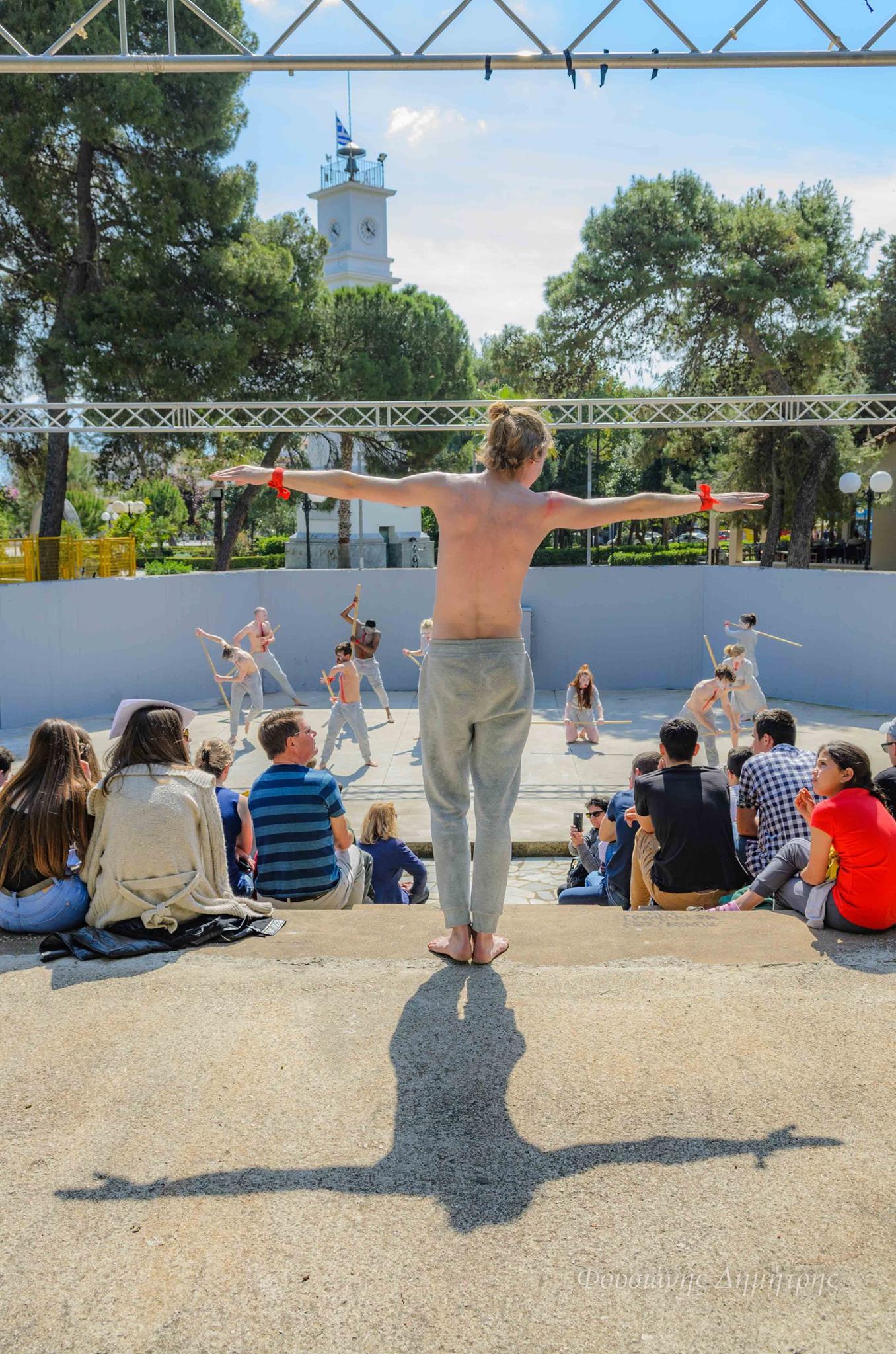 Add this to the collection of absolutely unforgettable experiences. A dream I didn’t know I had came true after our ensemble got to perform Aeschylus’ Prometheus Bound in a 2400 year-old Odeon theatre in Messene, Greece for the Ancient Messene Festival. Before being welcomed by a packed theatre and the sight of the mountain of Aphrodite in the background, I will particularly cherish the moments leading up to the performance: walking barefeet through grassy mountain meadows with white flowers everywhere, then down the steps feeling like a gladiator about to enter the arena.. definitely a very different experience than the type of theatrical entrance I’m accustomed to. Once on stage, we were welcomed by an amazing energy – fresh air, unbelievable acoustics and the bright April sun descended on our bare bodies as we started telling this ancient but very resonant story of Prometheus and his divine companions.